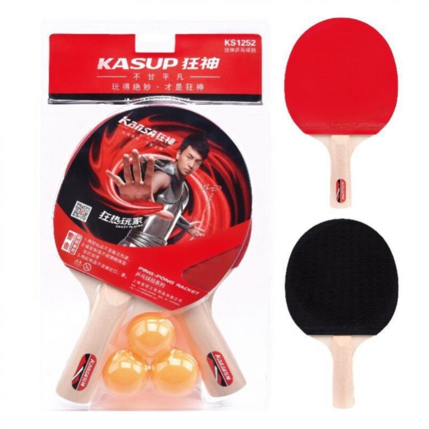 2 Kasup Ping Pong Rackets + 3 Balls