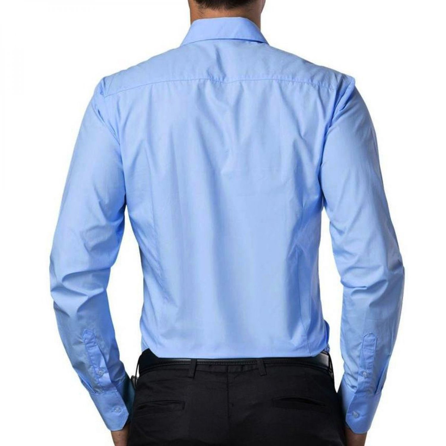 Matteo High Quality Light Blue Long Sleeve Fitted Dress Shirt -(No Pocket)