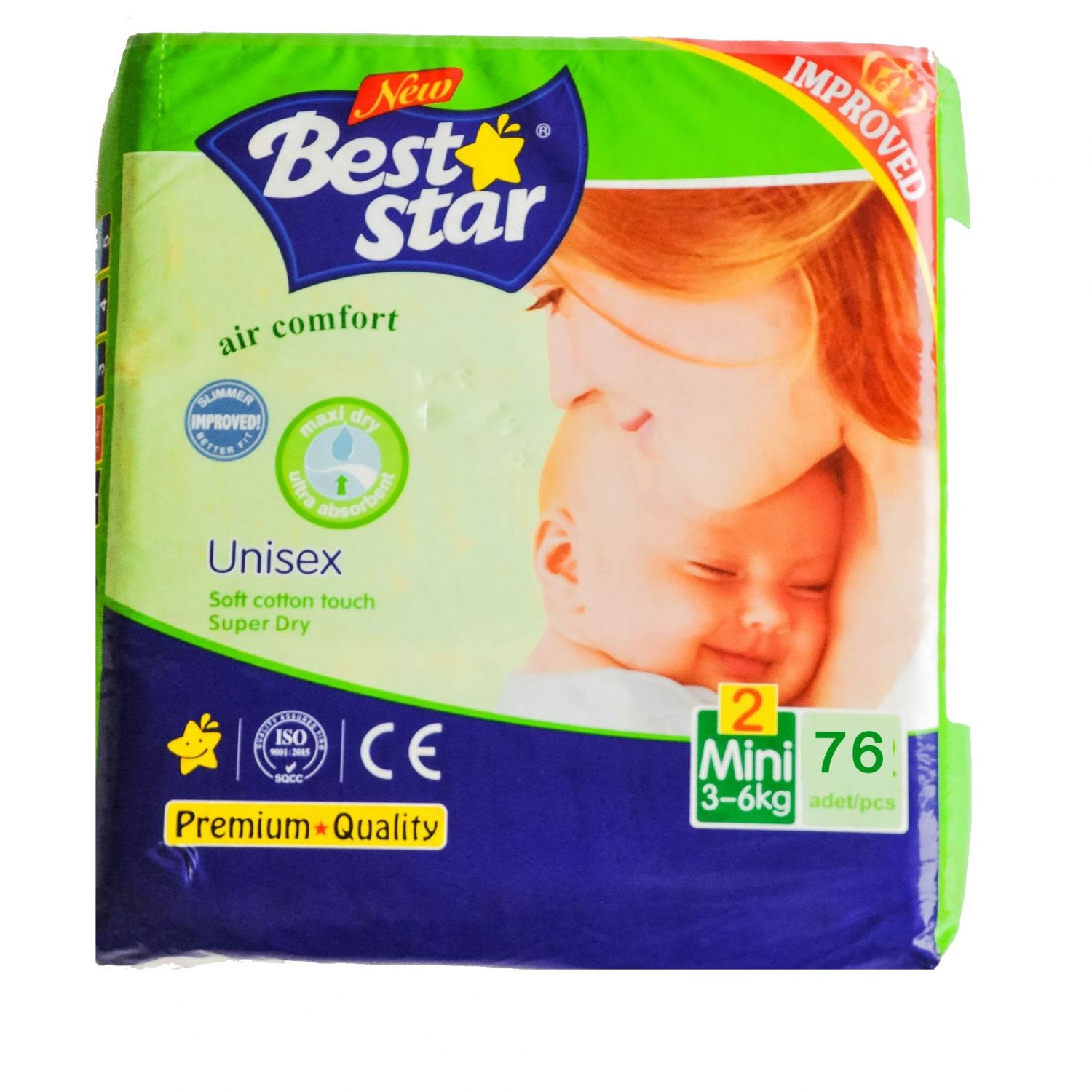 Best Star Unisexe Baby Diapers (3-6kg) - 76 Pcs