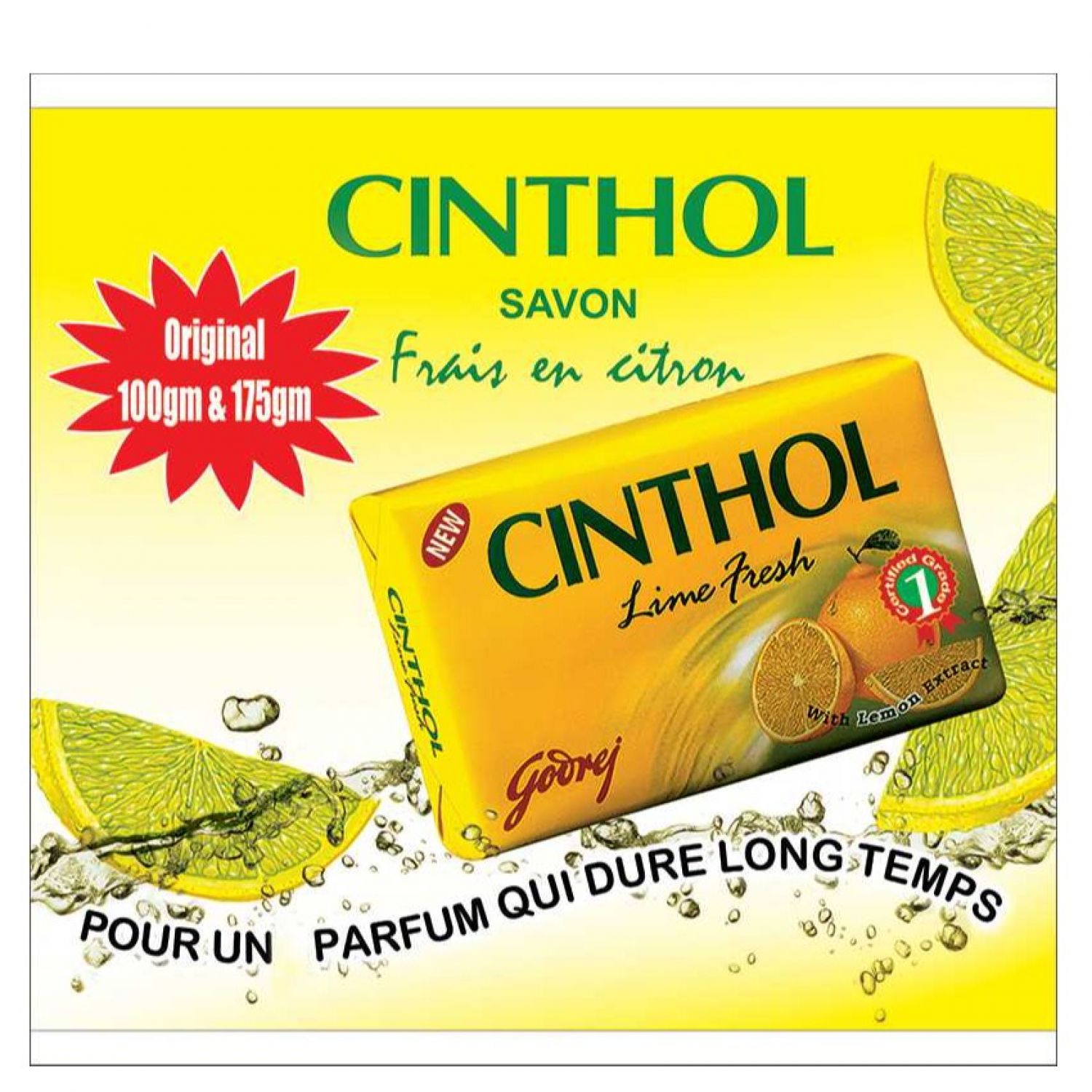 Savon Cinthol au Citron Frais Antibactérien & Déodorant - 125g