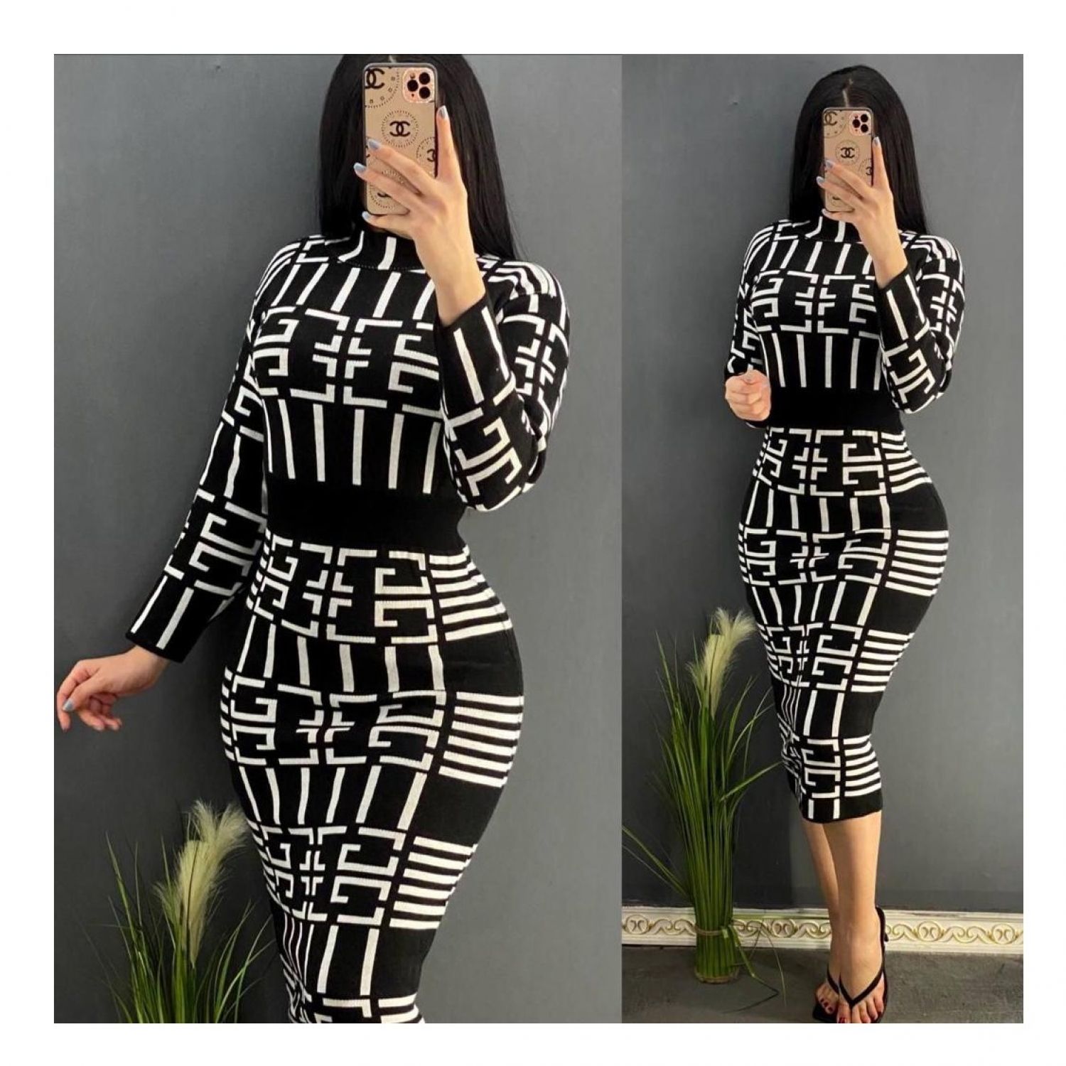 Sexy High Neck Body Fit Dress - Black