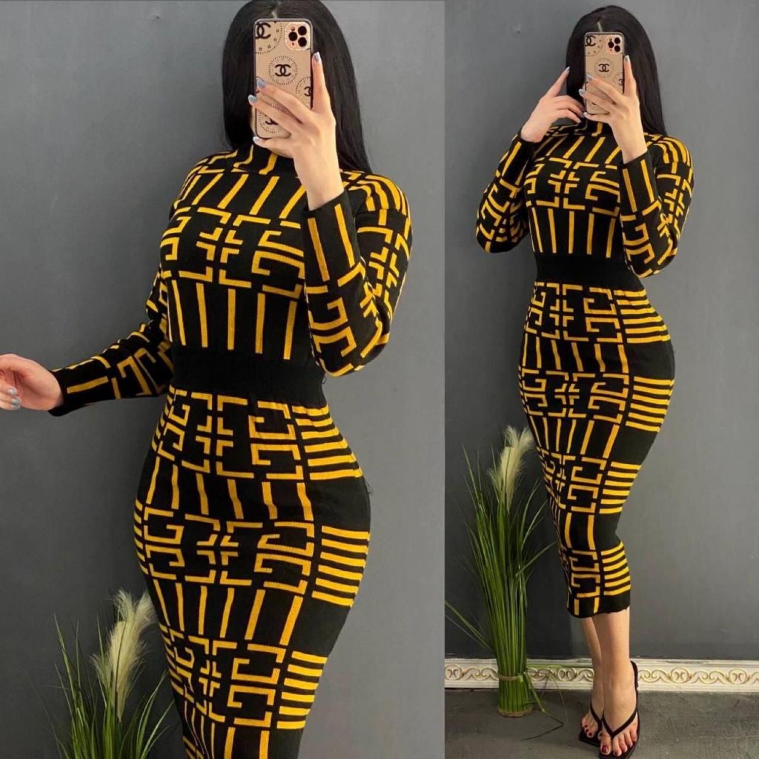 Sexy High Neck Body Fit Dress - Yellow