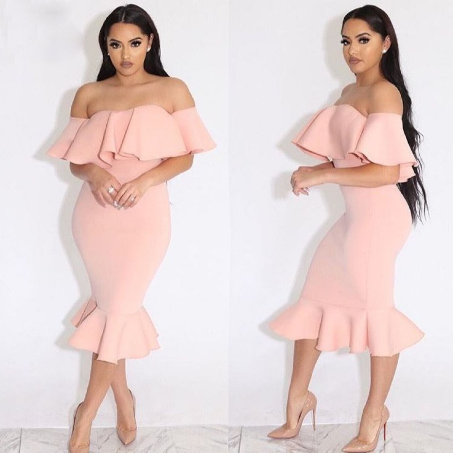 Strapless Dress With Ruffle Bottom - XL