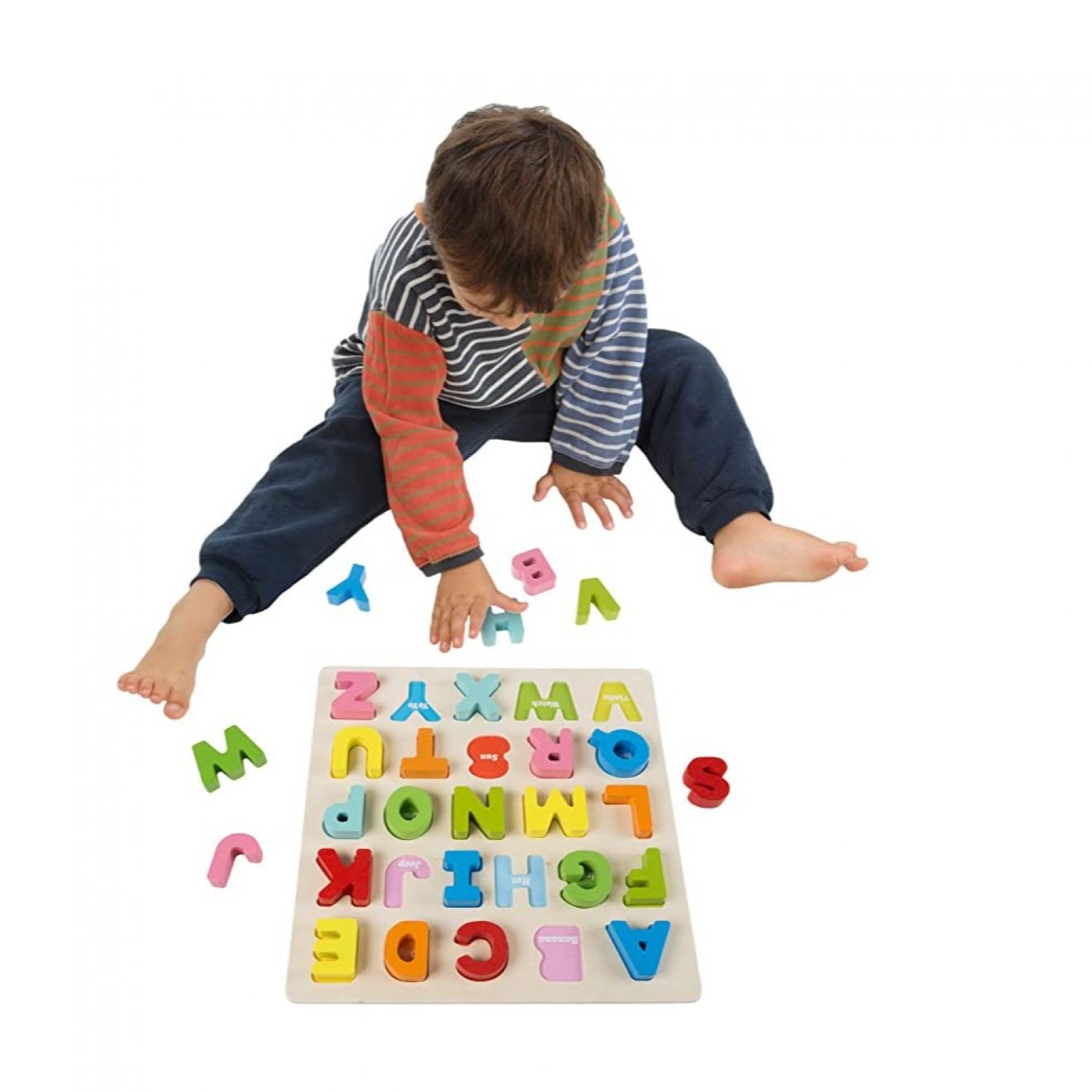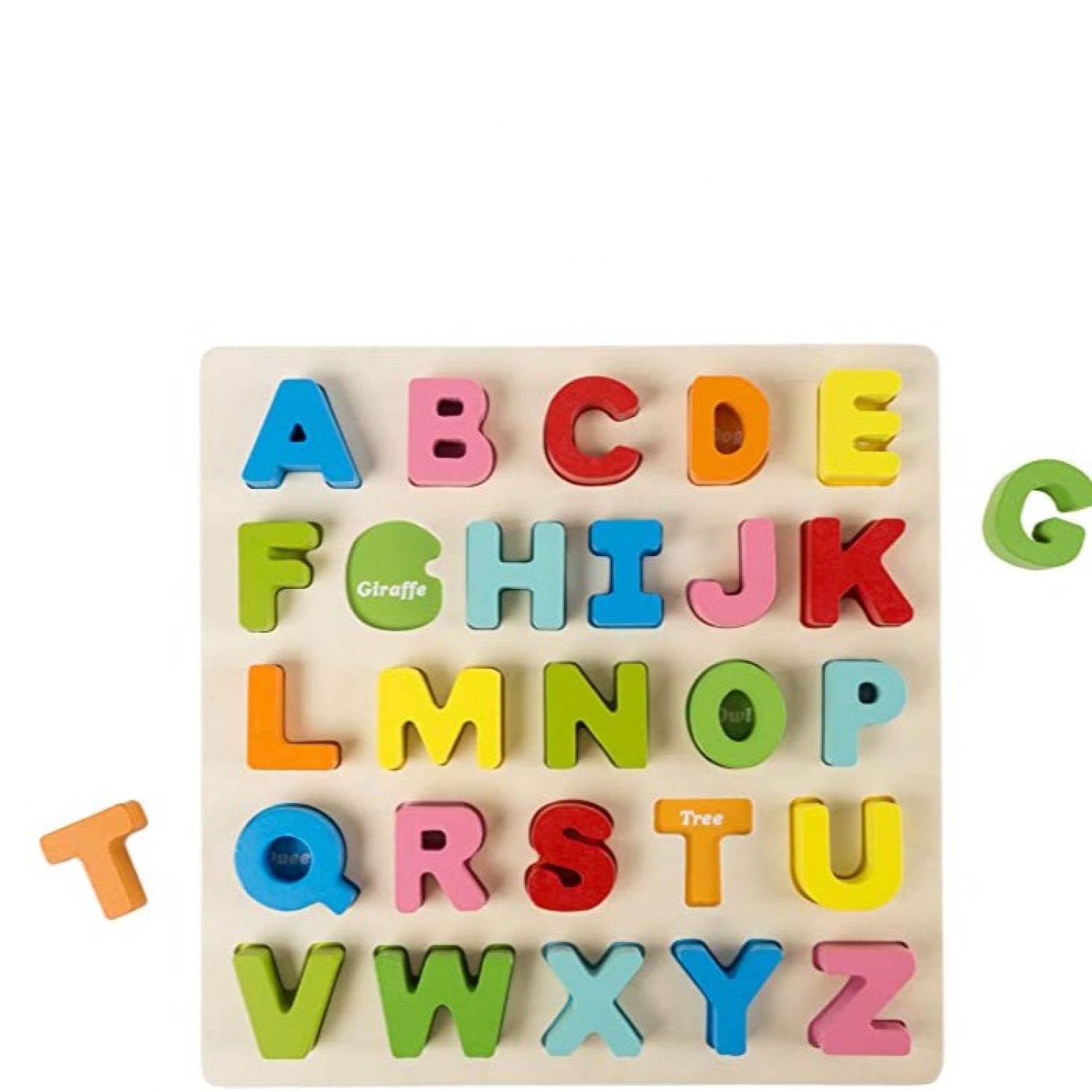 Wooden Letter Puzzle Board with Colorful Pieces